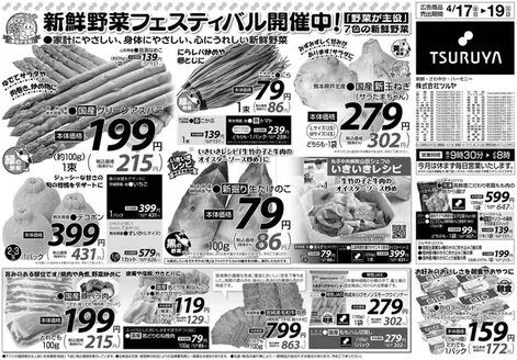 伊那市のツルヤのチラシとお買い得商品ツルヤは長野県に展開するスーパーマーケットチェーン。青果コーナーでは契約農園から直送、ほとんどの生肉を店内作業室で調理するなどこだわりがいっぱいです。 ツルヤの営業時間、住所や駐車場情報、電話番号はTiendeoでチェック!