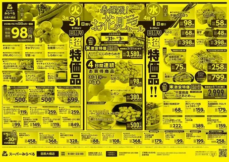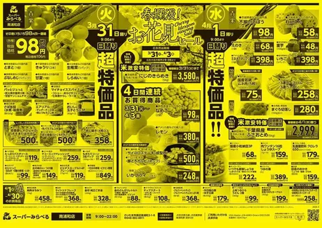 営業時間は、9:00~19:30。定休日はなく、年中無休。ホームページからは最新のチラシを見ることができます。