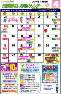 ホームページでは、最新のチラシ情報・お店の地図だけでなく、毎週土曜日はポイント5倍!火曜日はポイント2倍!など、お得な日が一目で分かるお買い物カレンダーも掲載。