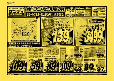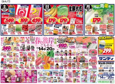 「毎日がお買い得! 店内、いつでも安い店」として、つねにお得な品ぞろえのサンディ!チラシでは選び抜かれた商品のさらなるディスカウント情報を確認できます♪