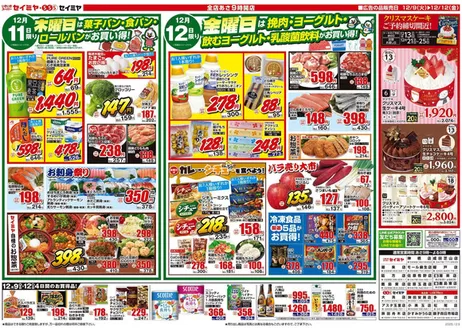 さらに、月~土曜は午後4時からセール、日曜は3時から夕市を開催!(実施店:セイミヤ潮来店、佐原牧野店、延方店、鹿島東店、佐原玉造店、成田芝山店、モール麻生店、アスタ玉里店、神栖店、馬渡店、榎戸店)